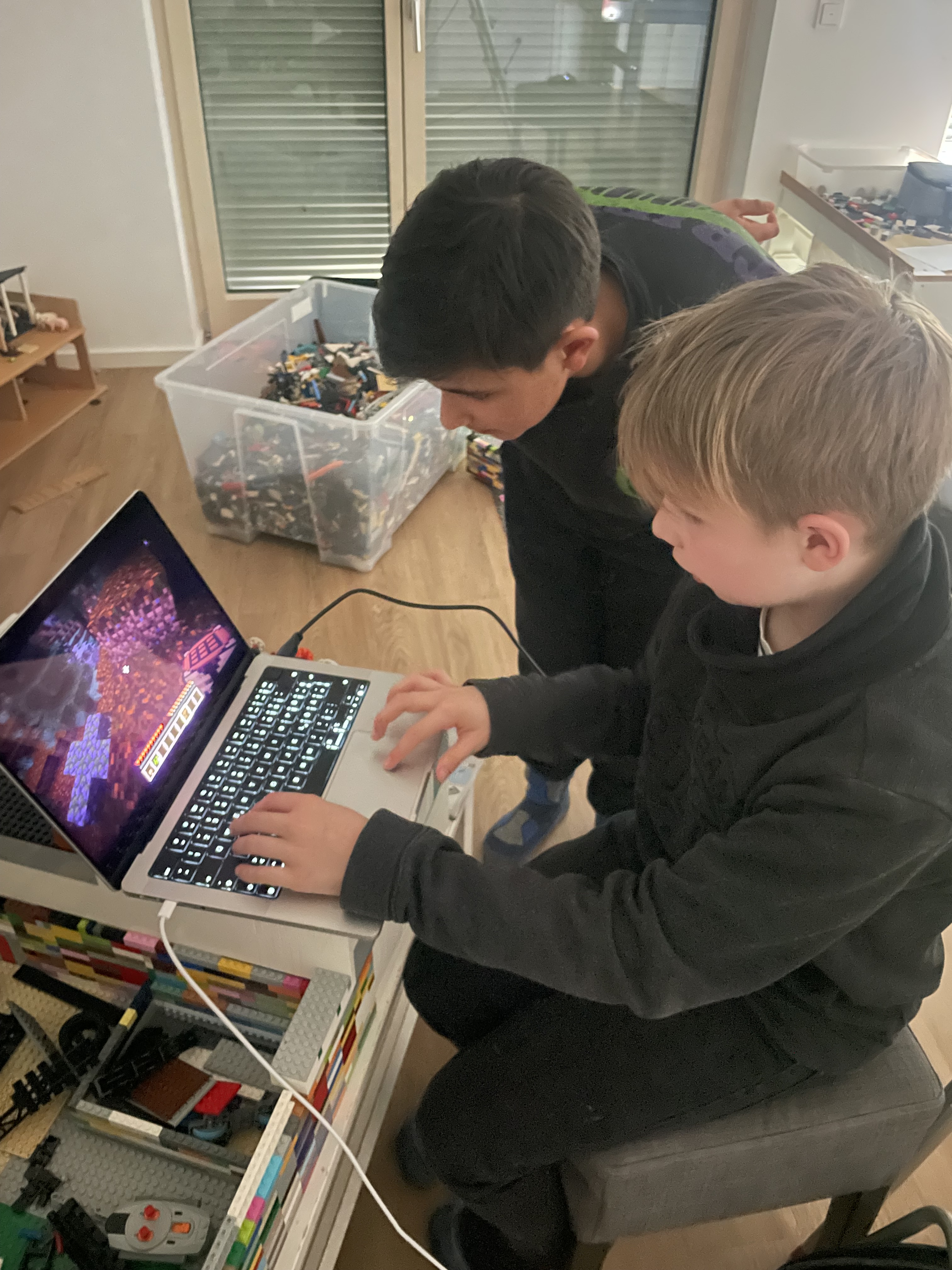 Besonders erfreulich war die sehr gute Kooperation zwischen den beiden Kindern. Sie unterstützten sich gegenseitig, tauschten Tipps aus und konnten trotz ihrer bereits hohen Spielzeit in Minecraft neue Dinge voneinander lernen. Dies zeigte eindrucksvoll, wie auch erfahrene Spieler:innen voneinander profitieren können, wenn der Raum für gemeinsames Lernen gegeben ist.