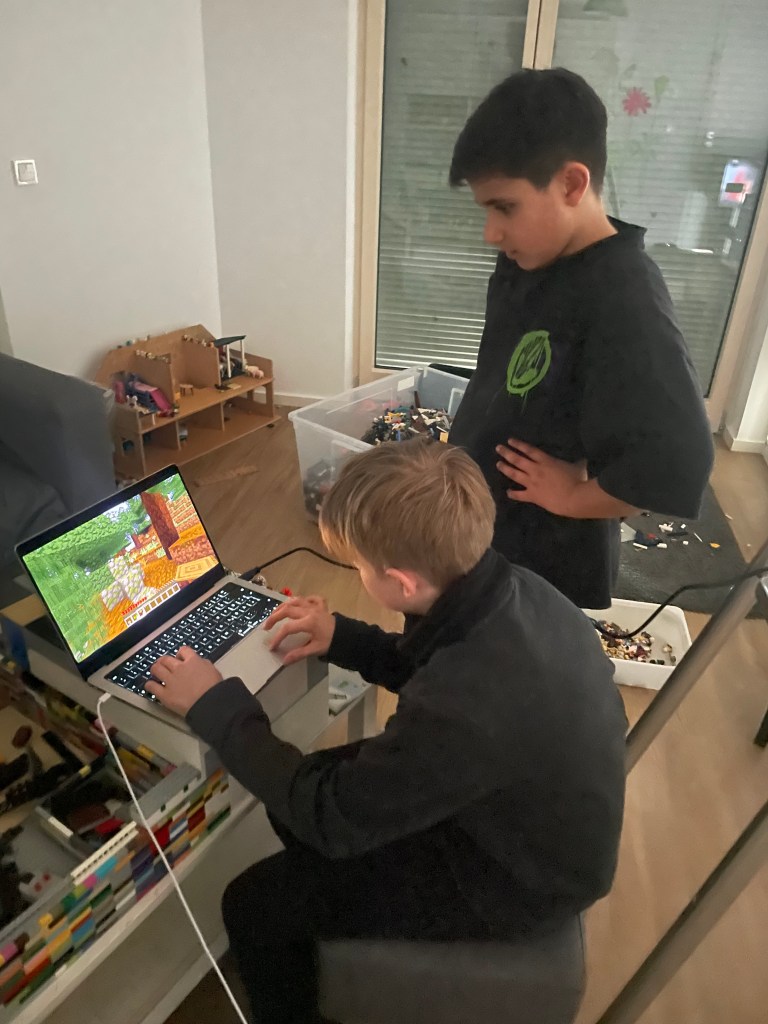 Besonders erfreulich war die sehr gute Kooperation zwischen den beiden Kindern. Sie unterstützten sich gegenseitig, tauschten Tipps aus und konnten trotz ihrer bereits hohen Spielzeit in Minecraft neue Dinge voneinander lernen. Dies zeigte eindrucksvoll, wie auch erfahrene Spieler:innen voneinander profitieren können, wenn der Raum für gemeinsames Lernen gegeben ist.